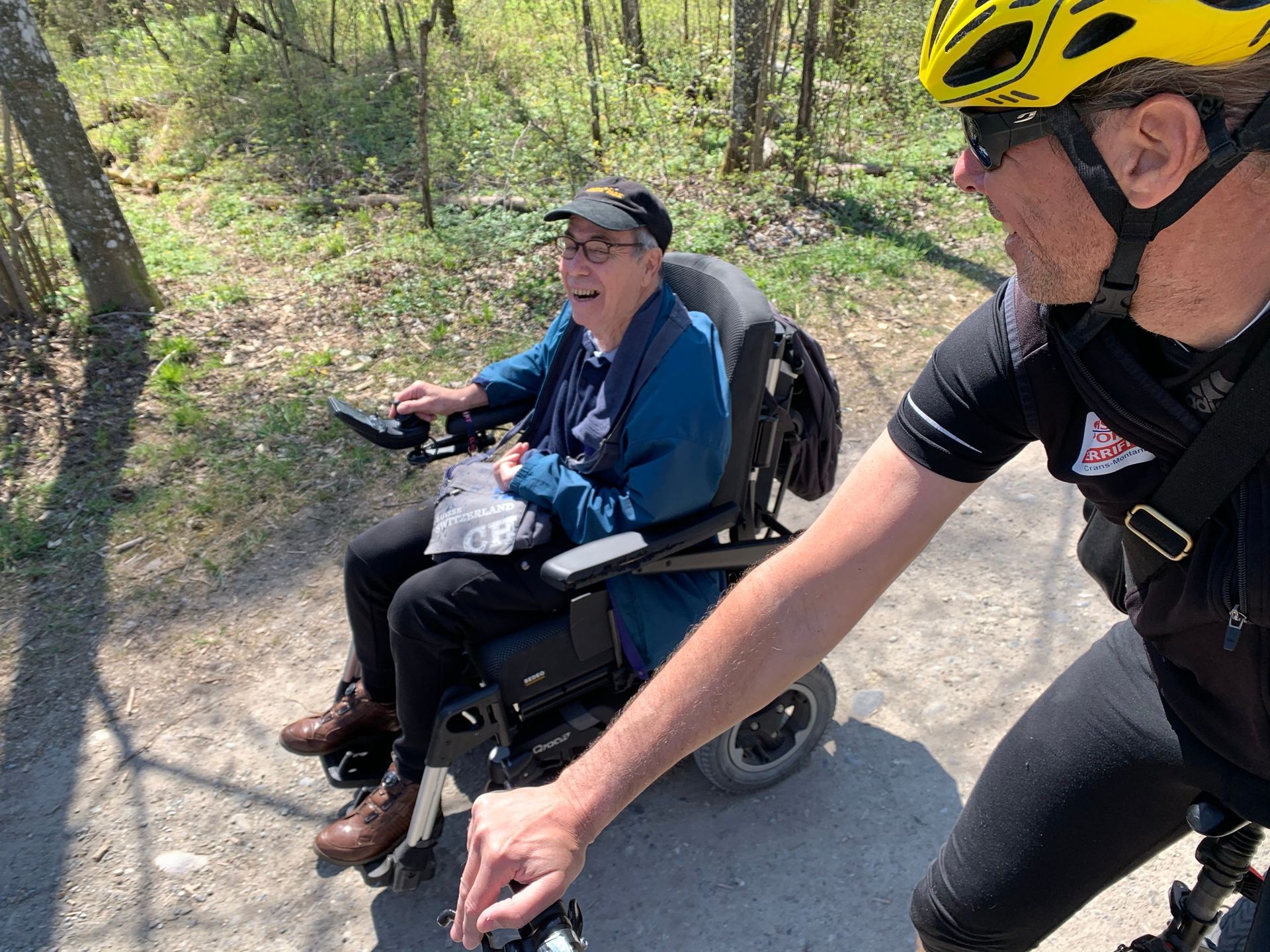 Suite à l'article de Valérie Schroeter dans La Liberté, j'ai fait la connaissance de Walty de la Basse le 15 avril 2021 ! Une sincère amitié s'est créé entre nous au cours de nos nombreuses sorties en ville, en campagne et en montagne ! Son fauteuil roulant électrique, permet de passer là où d'autres ne passent pas... pour de nouvelles découvertes. A la manière du film "Les Intouchables" l'humour est toujours présent, décapant, malgré quelques crises d'autorité, autant d'un côté que de l'autre !